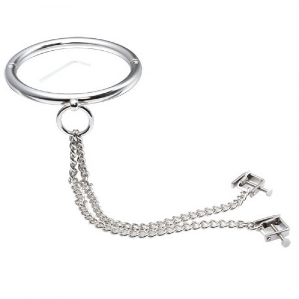 Round Bar Metal Neck Collar with Tight Nipple Clamps for Female BDSM Gear