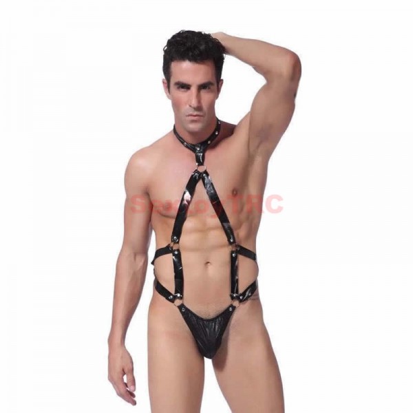 Male Sexy Harness Lingerie Costume Body Straps Patent Leather Thongs