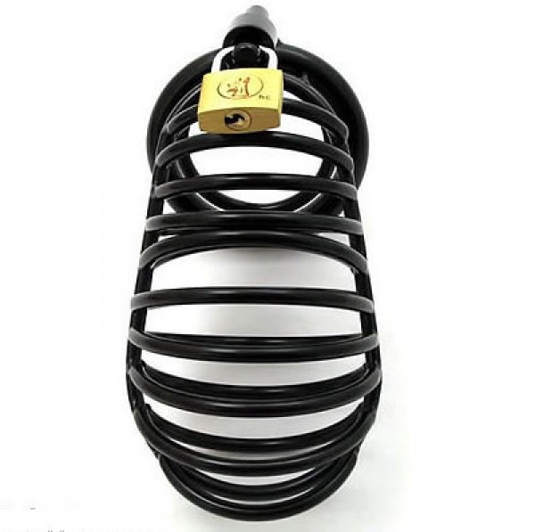 Long Cage Black Metal Male Chastity Device Belt Gimp Bird Lock Penis Cage